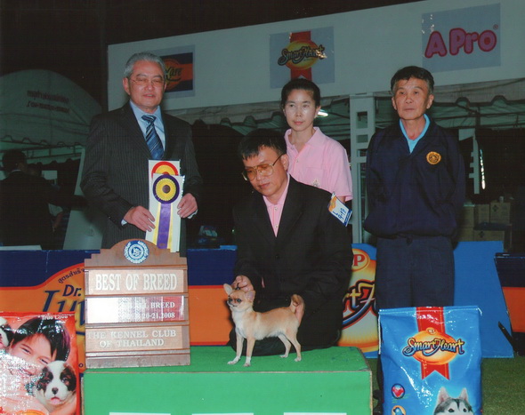 ชื่อ : TH.CH.Buabaan's KALAPAPUEK รางวัล : Best of Breed FCI 4/2008 & 59th KCTH ALL BREED GROUP 5 & 9 SPECIALTY CHAMPIONSHIP DOG SHOW DECEMBER 20,2008 THE ROSE GARDEN JUDGE : DR. JOSE F. MENDIOLA (PHILIPPINE)